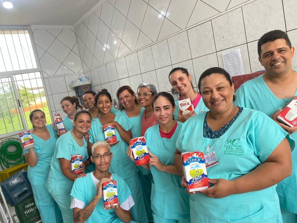 Alunos do quarto módulo do curso técnico de enfermagem da Etec Dr. Renato Cordeiro de Birigui também doaram nesta semana 312 litros de leite para o hospital, que serão utilizados pelo Serviço de Nutrição e Dietética, responsável pelas refeições dos pacientes.