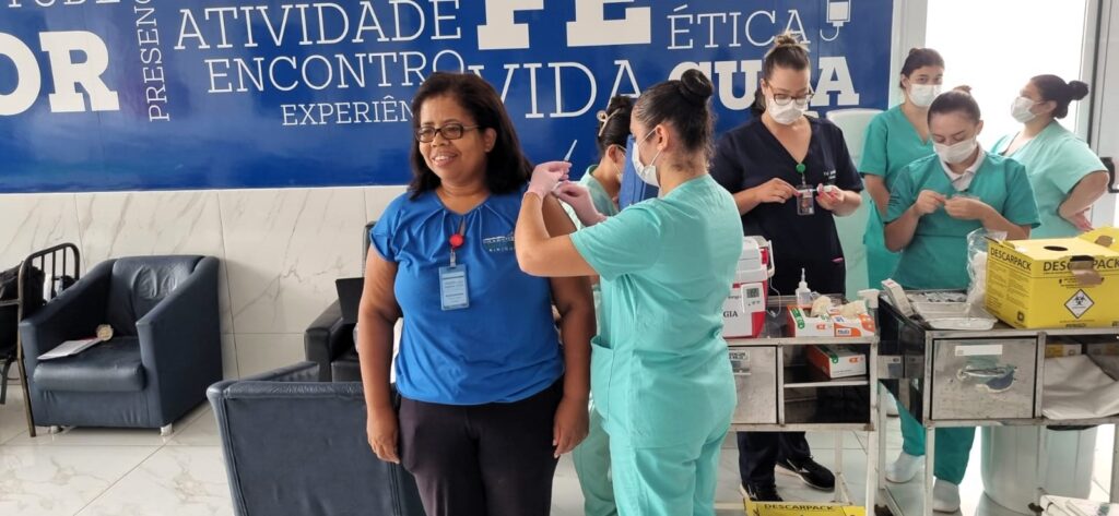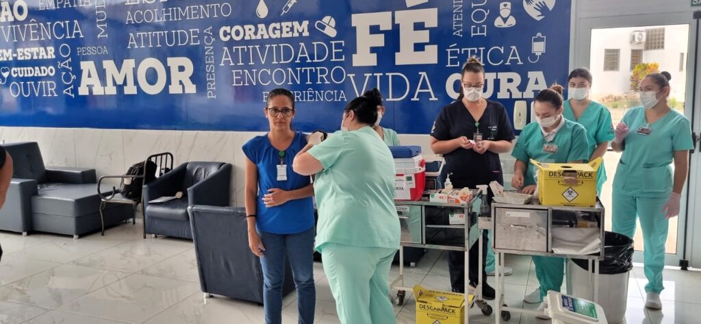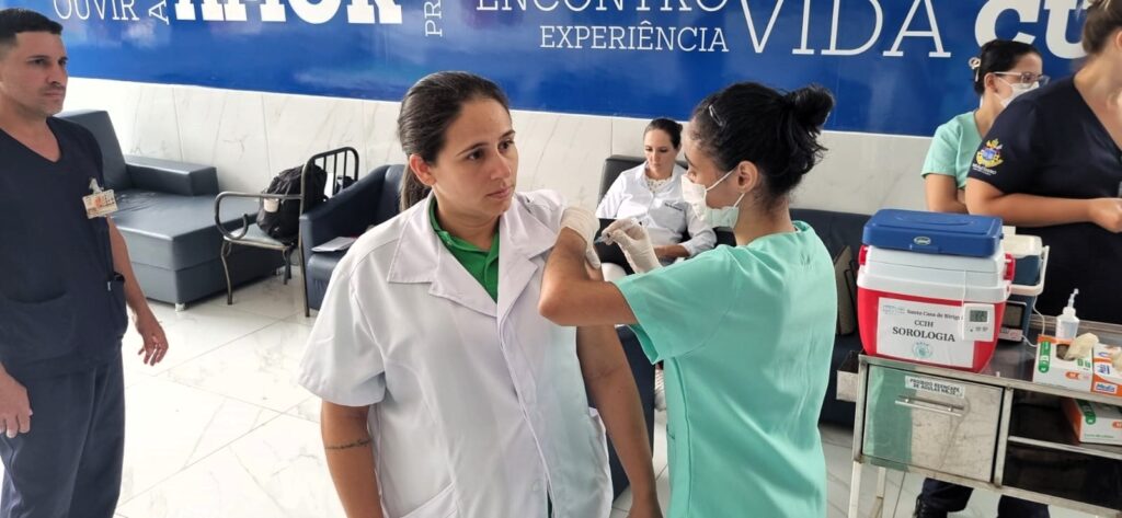 A vacinação contra o vírus Influenza foi realizada na Santa Casa de Birigui nos dias 14 e 15 de abril, no salão de convivência da instituição.