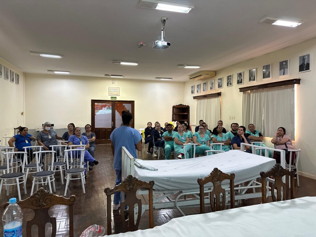 Na segunda-feira (15), a programação contou com a participação da equipe de fisioterapia, que abordou o tema Oxigenoterapia. Em seguida, a equipe do centro cirúrgico apresentou a palestra Cirurgia Segura, e a equipe de pediatria das unidades UE3 e UE4 trouxe orientações sobre Prevenção de Quedas.