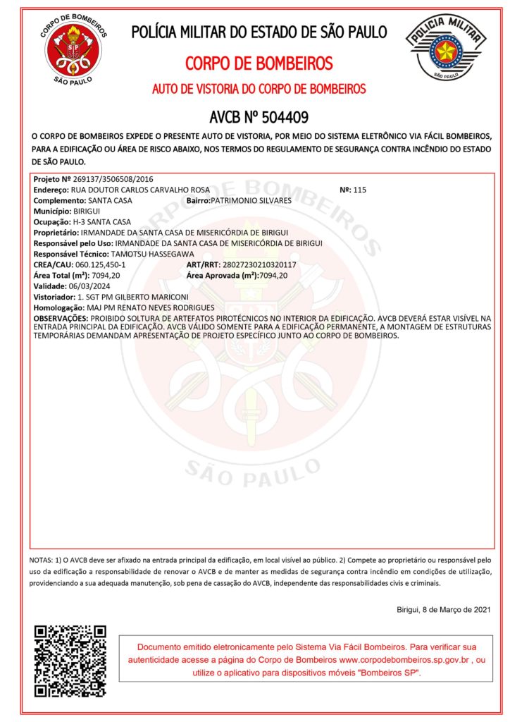 Santa Casa de Birigui recebe AVCB pela 1ª vez