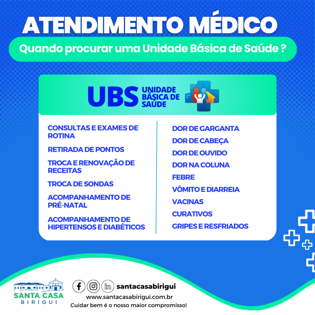 Por isso, buscar atendimento de saúde a um local correto é essencial para a garantir uma assistência adequada e diminuir os deslocamentos desnecessários. Para tirar essas dúvidas, a Santa Casa de Birigui preparou material para você saber em quais casos procurar uma UBS ou o PS.